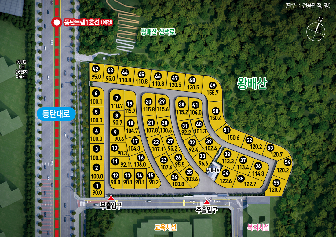 - 상기 단지배치도 상의 개발 및 교통계획에 관한 사항은 추후 관계기관의 사정에 따라 변경 및 취소될 수 있으며, 이는 당사와 무관함을 알려드립니다.